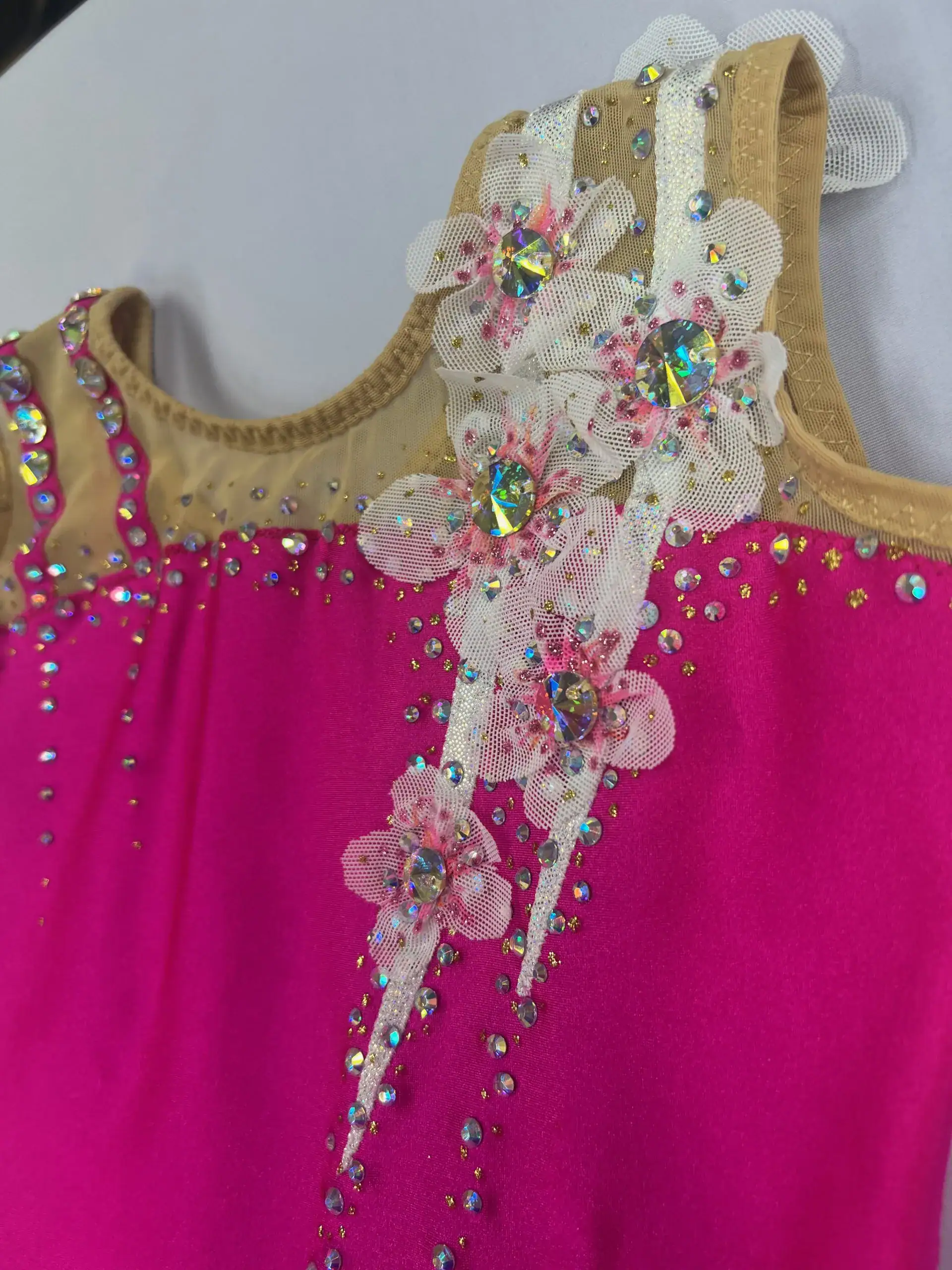 Tämä puku on suunniteltu erityisesti pienille voimistelijoille, jotka tarvitsevat mukavan ja tyylikkään esiintymisasun kilpailuihin ja harjoituksiin.